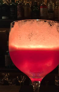 さて、店内の様子ですが、お店の扉を開けると横幅4メートル、奥行きが15メートルの細長い空間が広がっています。内装は全体的に黒っぽい感じで、大きな一枚の桜材で出来た立派なバーカウンターが伸びています。そこにハイチェアーが12脚ほど配されており、カウンターの中は2人のバーテンダーが立てるくらいの空間、そしてその後ろには様々な蒸留酒、とりわけ、こだわりのブランデーやスコッチウイスキーがぎっしり並んでいるといった具合です。